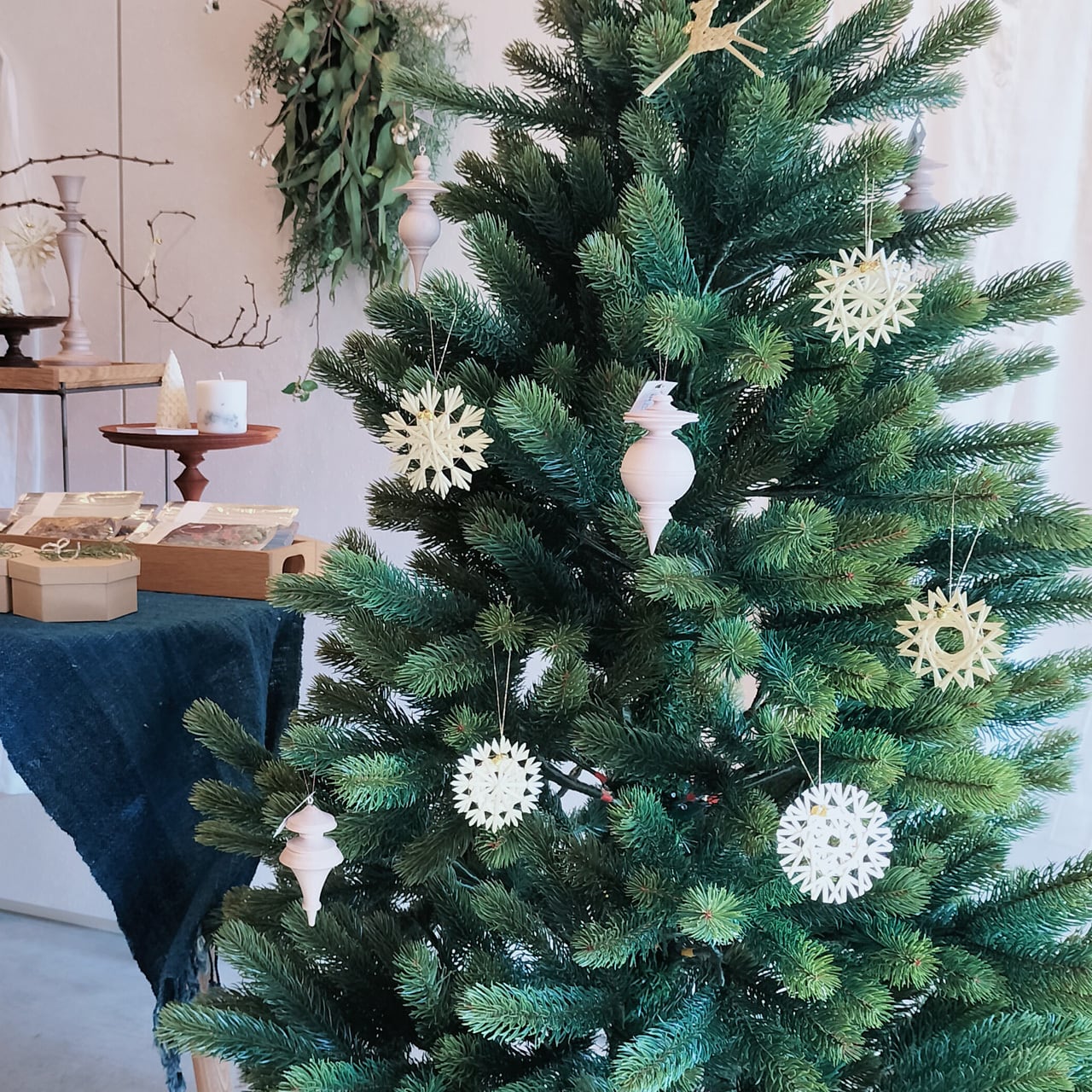 オーナメントを飾ってこの季節ならではのうっとりする時間をお過ごしください。ドライ植物の入った専用の箱でお送りします。